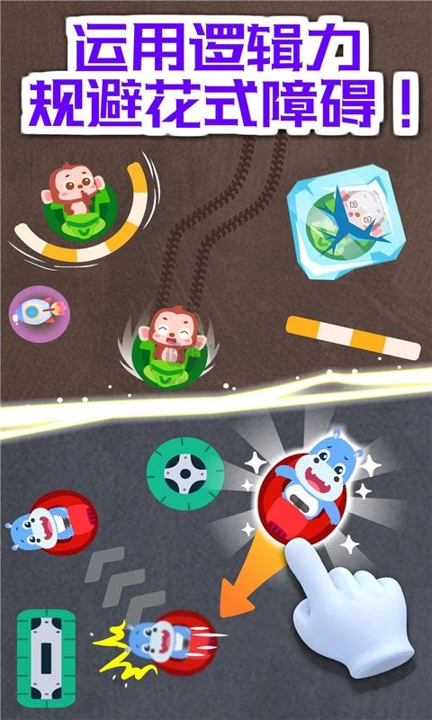 赛场上的轮胎和风扇,会阻碍碰碰车的行驶,宝宝要规划好路线,巧妙躲避障碍。