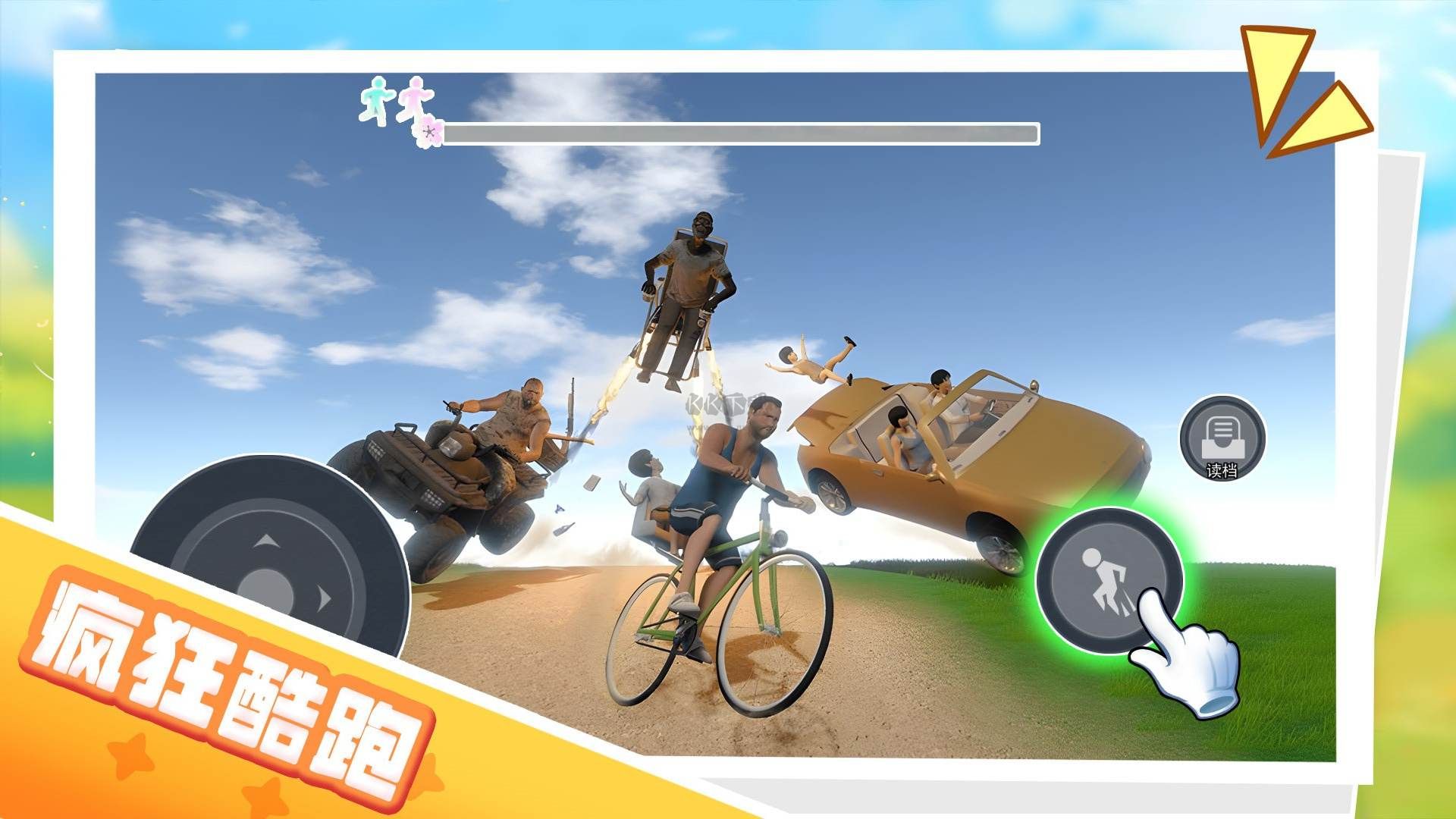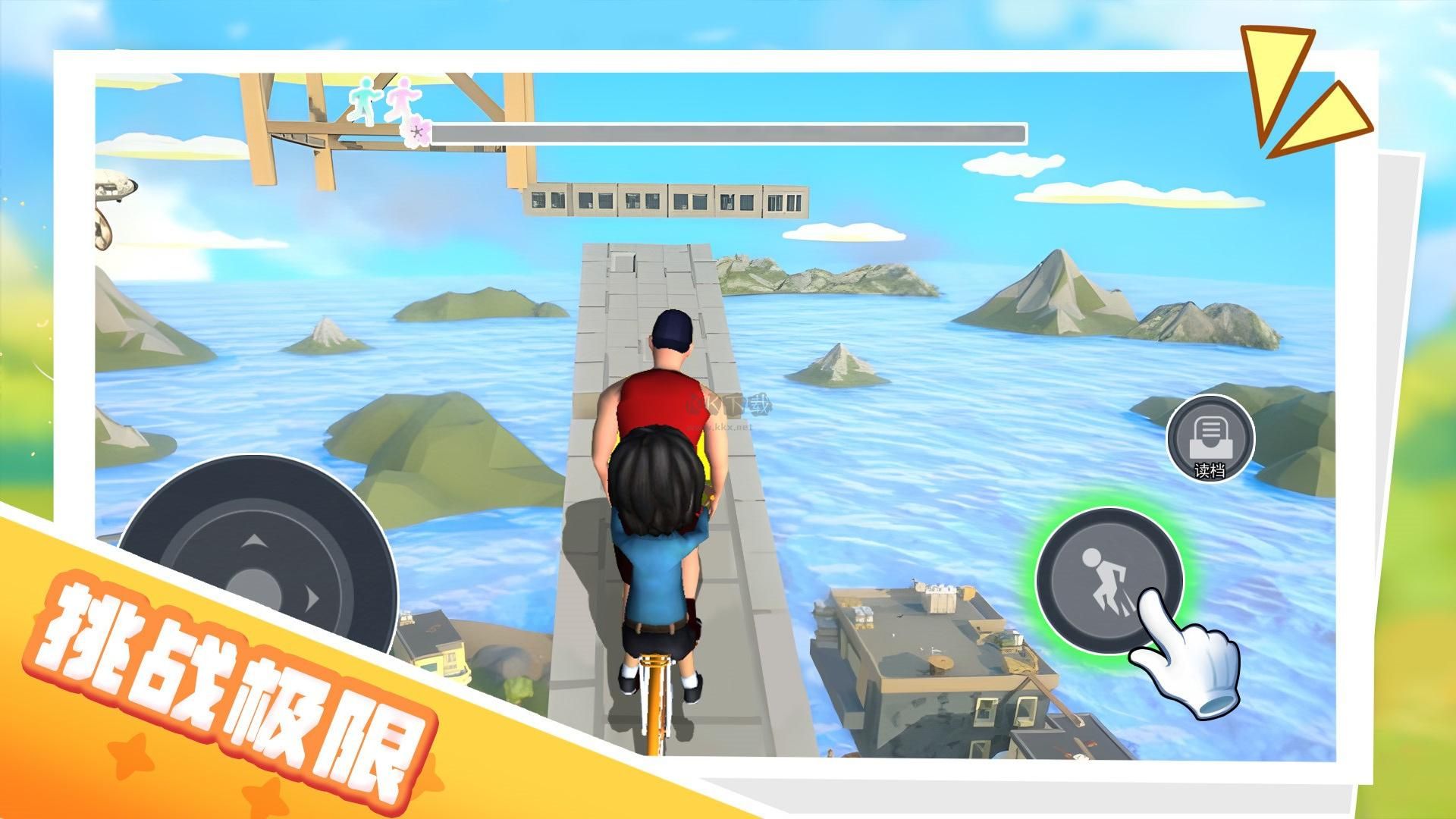 3、只需点击屏幕下方的按钮,自行车即可跃然起飞。通过双手操作,成功地完成一系列关卡。