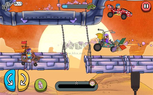 5、当选好赛车后就会开启比赛,屏幕右边的踏板是加速按钮,左边的是控制在空中翻转的方向。
