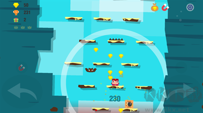 在跳跃的时候,您将捡到不同的道具,例如火箭,炸弹等。合理的使用道具,将带来完全不一样的体验。