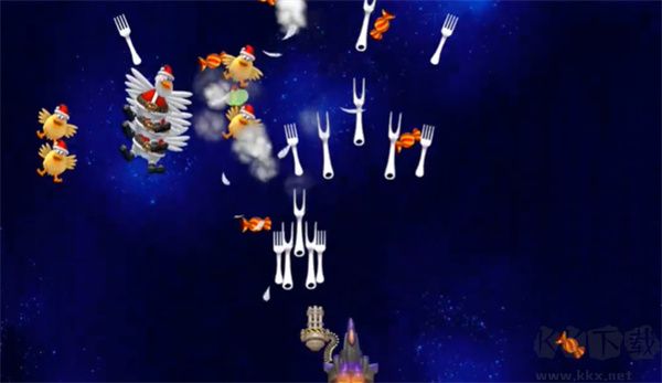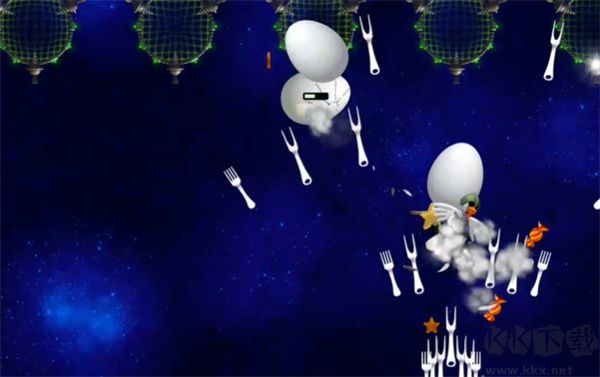 1、关卡中会出现很多的小鸡,一定需要不断躲避,可不能碰到了,为此还得使用更厉害的武器。