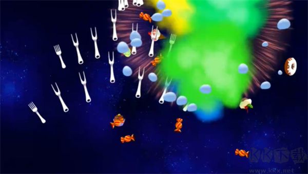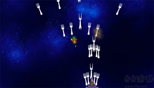 即时强化机制:拾取随机掉落的“礼物道具”可临时提升武器威力(如散射叉子、激光束),形成爆发输出窗口;