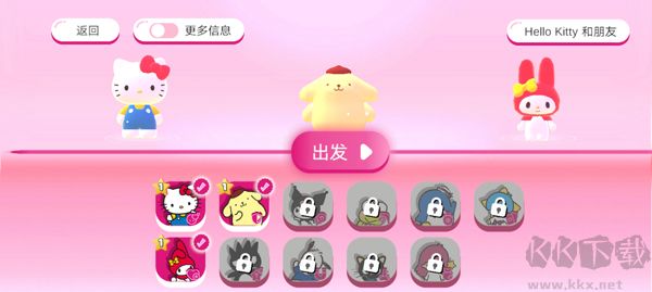 1、【扮演可爱角色】化身Hello Kitty和她的好朋友们,每位角色都有专属的舞蹈动作,跳起来萌趣十足!
