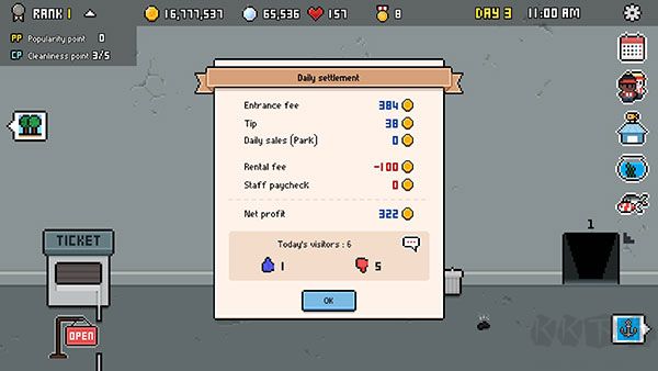 5、除收取门票外,还需定期清理水族馆,并收集客人头上的爱心以提升好感度;