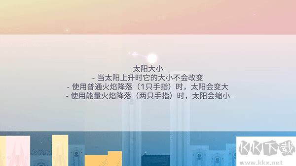 9、太阳大小变化规则:上升时不变,单指火焰降落会变大,双指能量火焰降落会缩小。