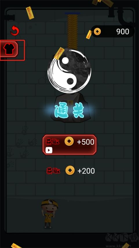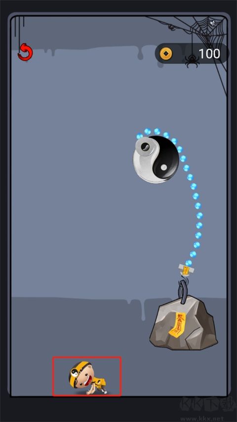 5、第五关:拉动抓钩抓住下方开关按钮,解救被困的小道士。
