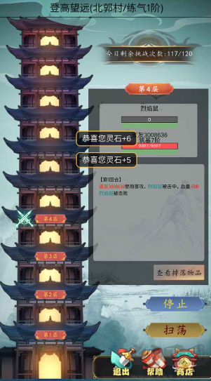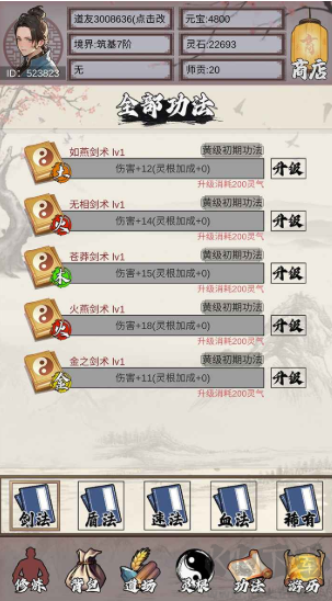 2、您能修炼提升功法境界,增强角色战力。