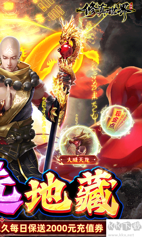 3D端游品质地藏手游《修真世界-真地藏养龙》,超火爆仙侠大作,震撼来袭!开局VIP+大威天龙称号,首周送万元充值券,永久每日再额外给2000元充值券,配上终身保送的现金点,所有充值活动皆可免费参与!