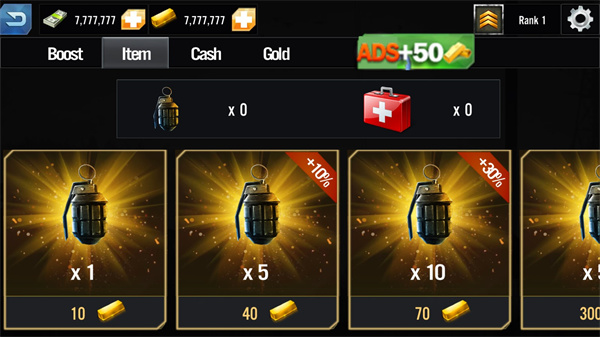 5、游戏内道具丰富,有更好的帮助你成长的双倍道具,也有更好的帮助你战斗的增益道具,在末日,血包和手雷这些珍贵的物品会更好的帮助你生存下来。