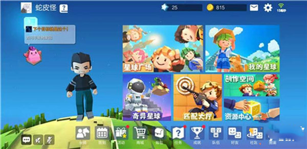 1、在进入我的星球之后,可以从平原、荒野、沙漠这些地形中选择你喜欢的。如果你是初次接触这类游戏,建议按新手引导的来就好,比如说难度最低的平原家园。有现成的木屋,随处可见的鸡牛羊