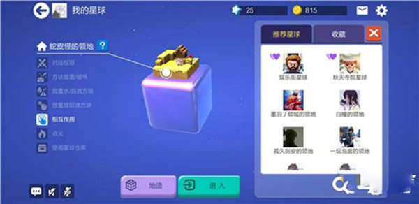 4、还可以参考大触们的建设思路,在星球入口页面找到右下角的“推荐家园”,可以看到许多优秀的星球作品。如果你设计的星球足够亮眼,没准也会获得官方的推荐哦