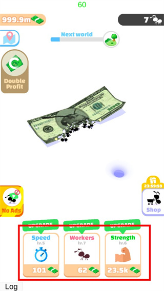 3、让您的蚂蚁大军吞噬您面前的一切,从而为您赢得可用的奖励金币;