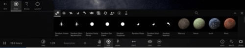 1、添加物体(这是最最基本的操作了)点击add按钮,就会出现以下界面:在这里可以添加行星,恒星,卫星,星系,黑洞,日常物体,航天器等。你可以点击你想要添加的物体,然后把它放在这个空间中,理论上,这个空间中可以放置的物体数量是无限的(只要你电脑性能足够强)