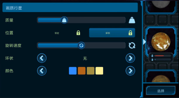 4、我们可以在手机游戏太阳系上在放一个行星,随后给他一些原始主要参数,一起来看看它对咱们太阳系的各类危害。