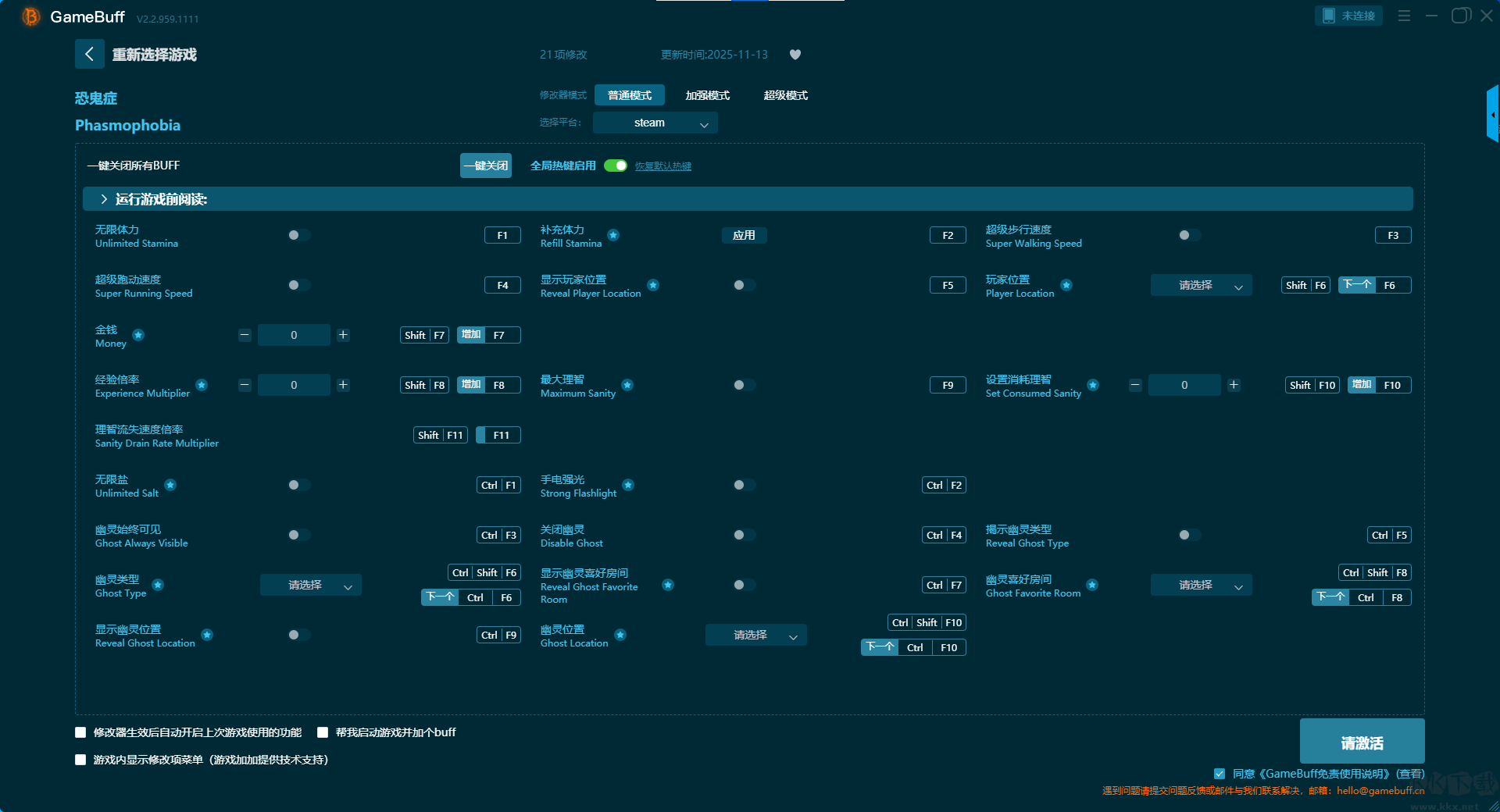 恐鬼症(Phasmophobia)二十一项修改器pc完整版加强模式修改功能介绍