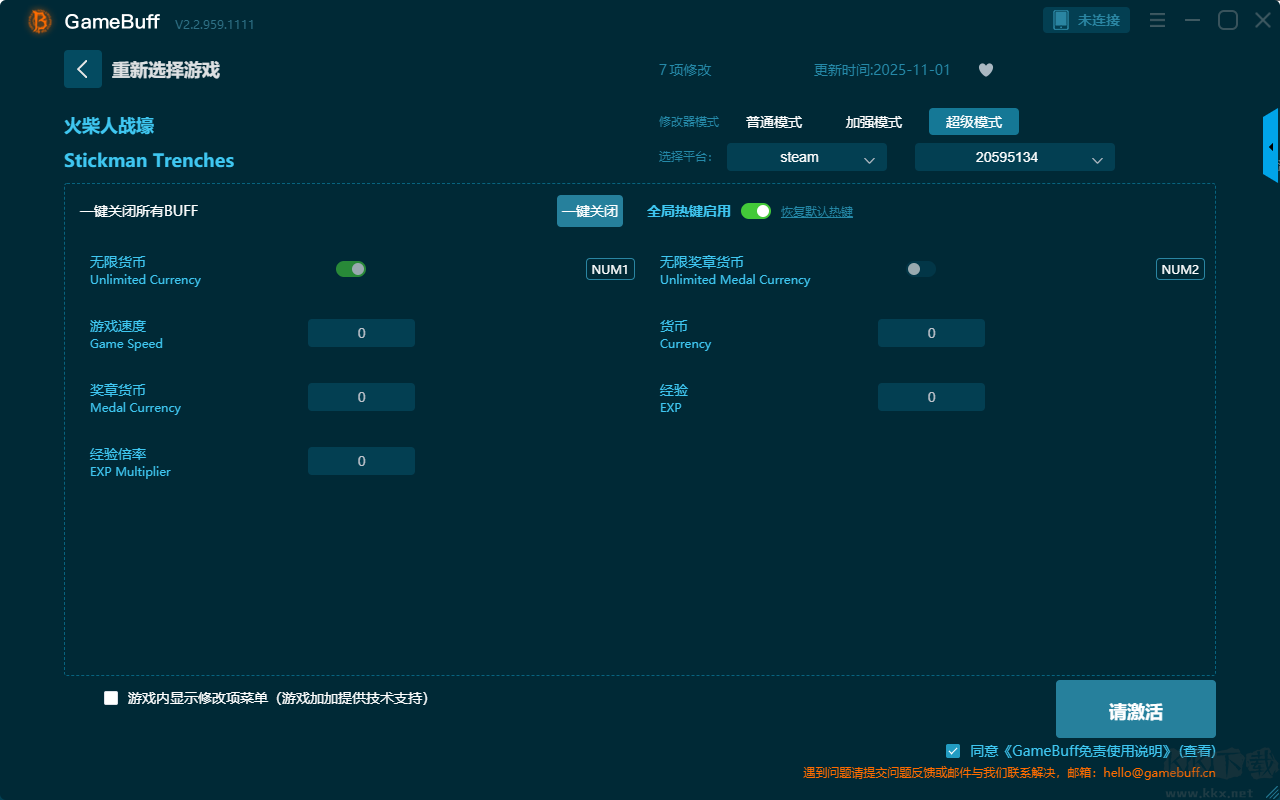 火柴人战壕五项修改器pc免费版超级模式 (支持 7 项修改,不支持联网模式)
