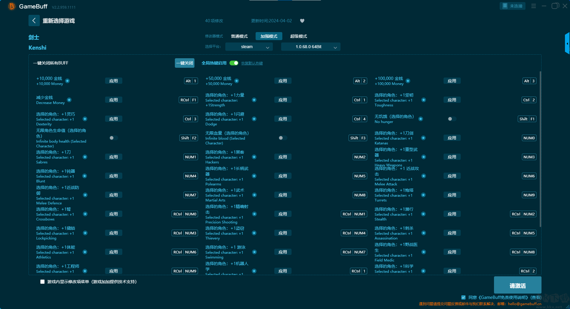 剑士(Kenshi)十一项修改器pc抢先版加强模式 (支持 40 项修改,不支持联网模式)
