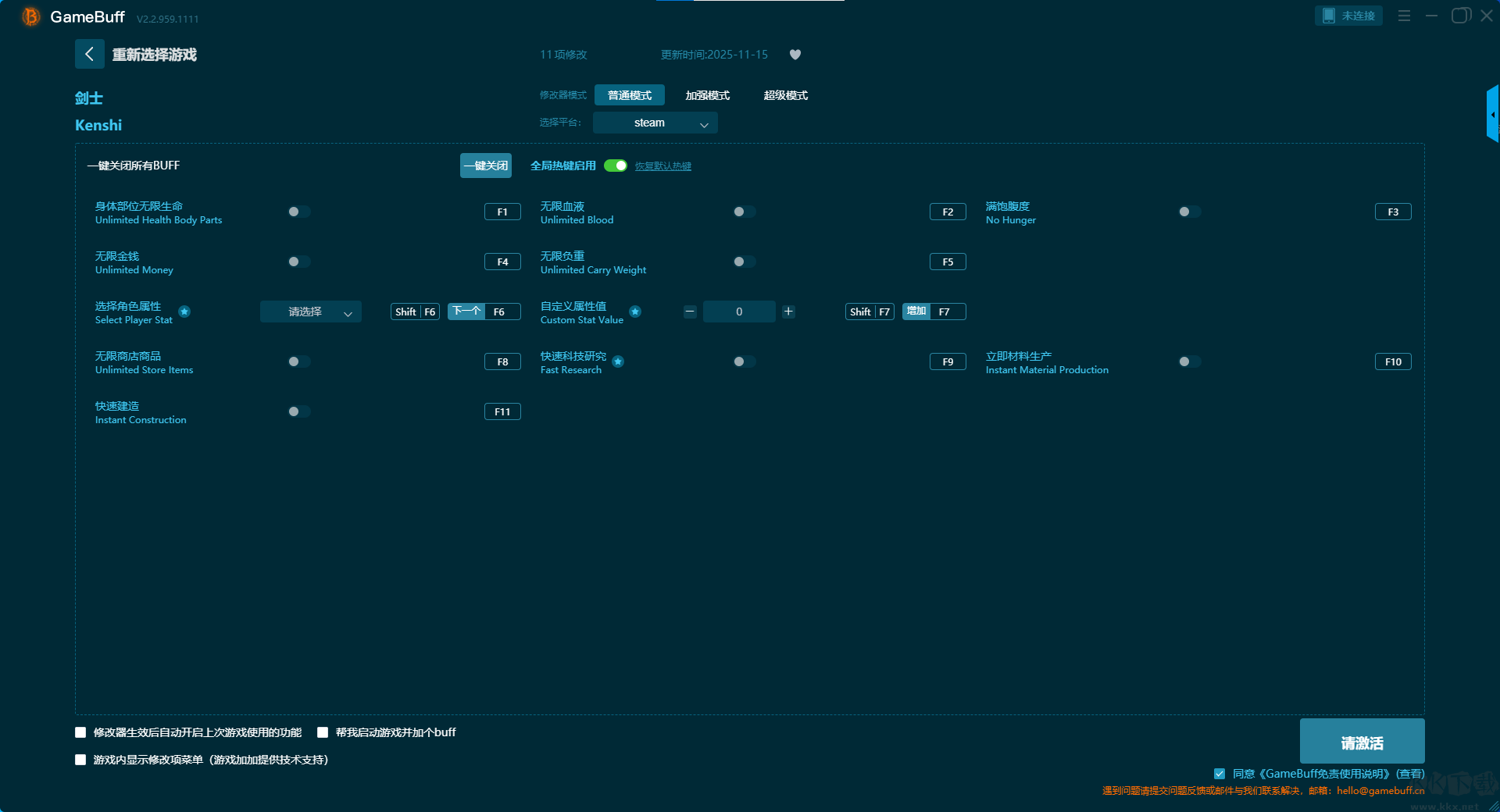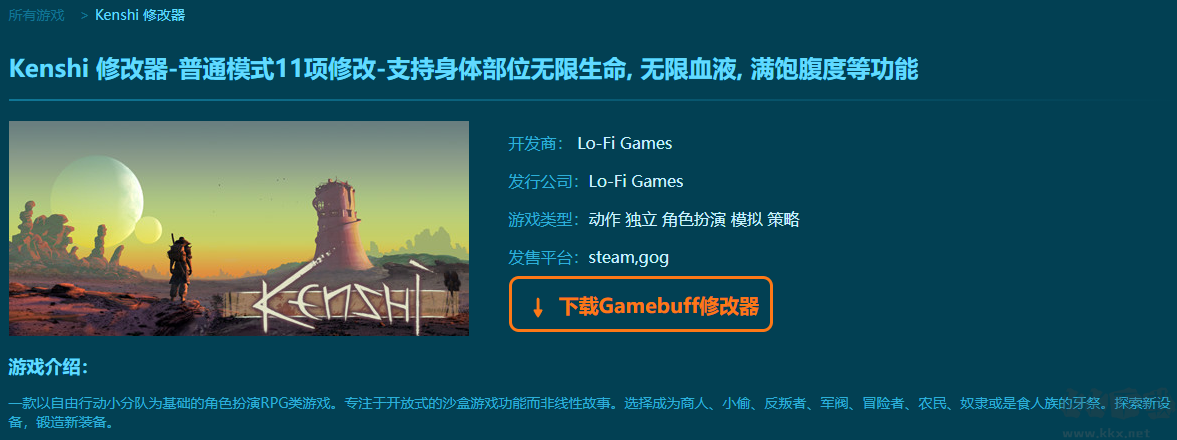 剑士(Kenshi)十一项修改器pc抢先版普通模式 (支持 11 项修改,不支持联网模式)
