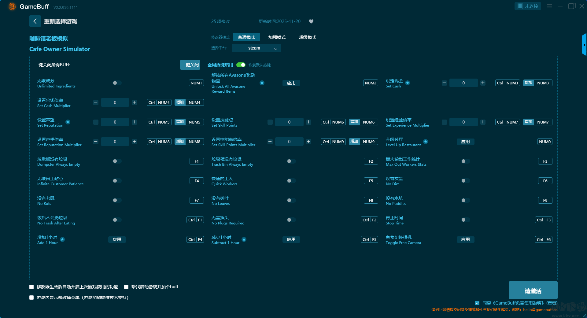 咖啡馆老板模拟二十五项修改器pc正版加强模式修改功能介绍
