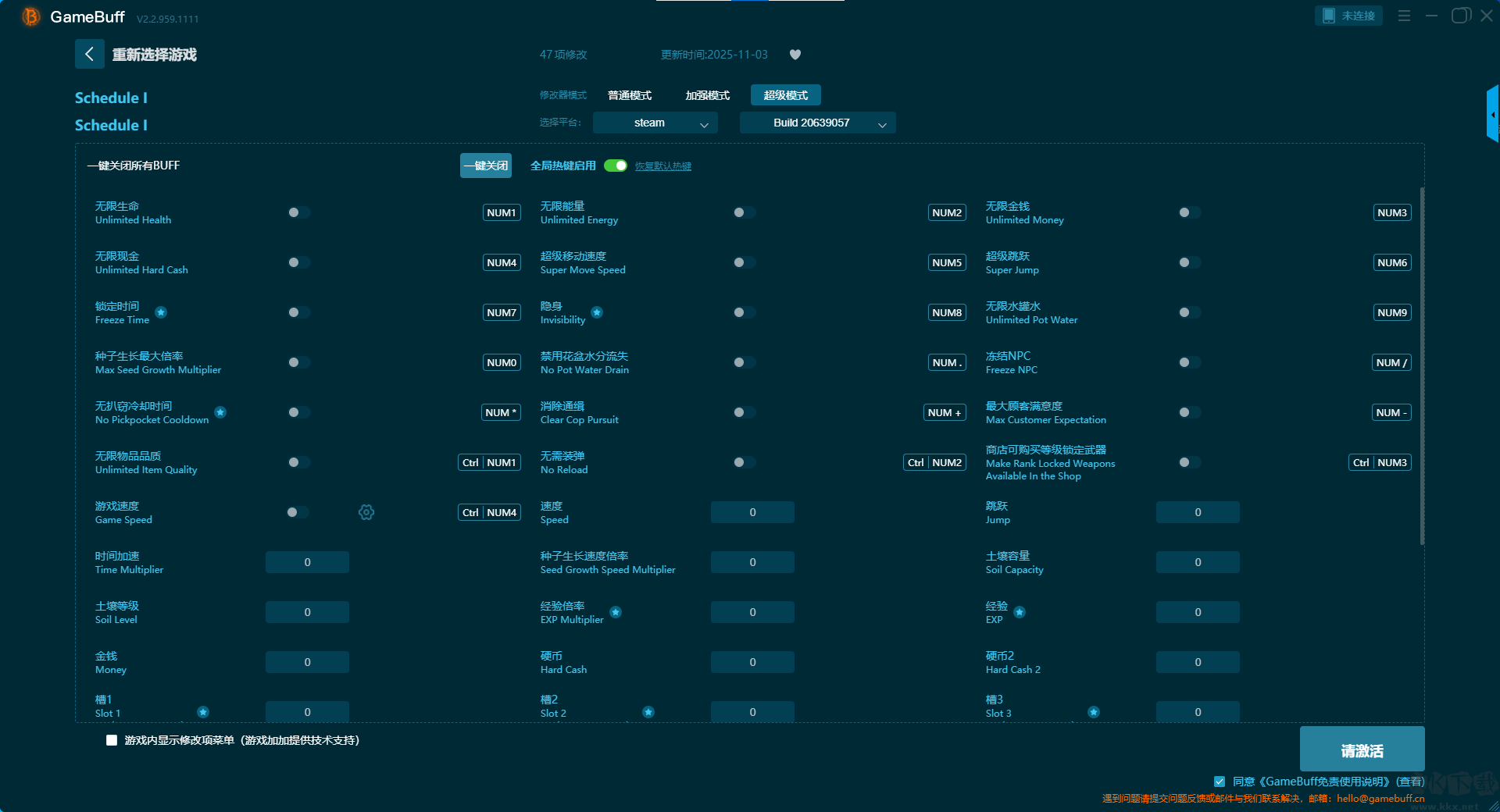 Schedule I十八项修改器pc国际版超级模式修改功能介绍