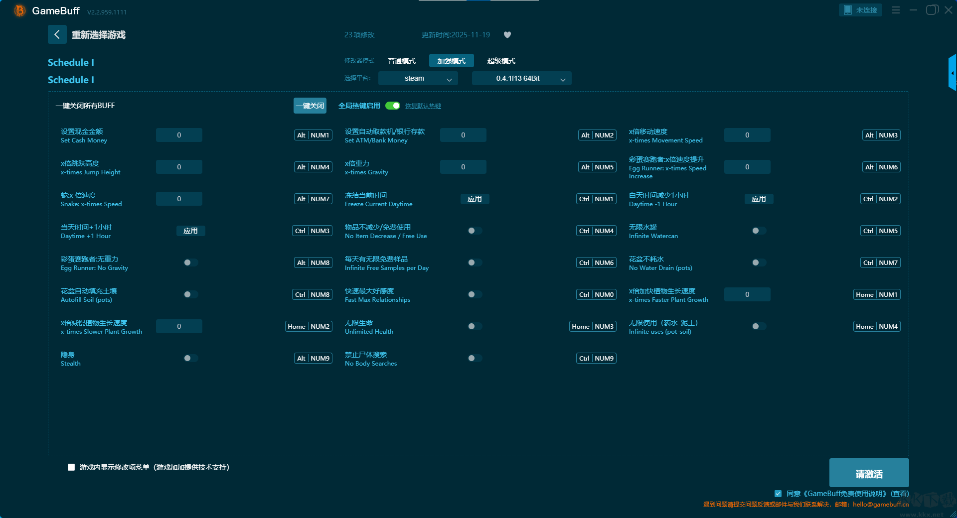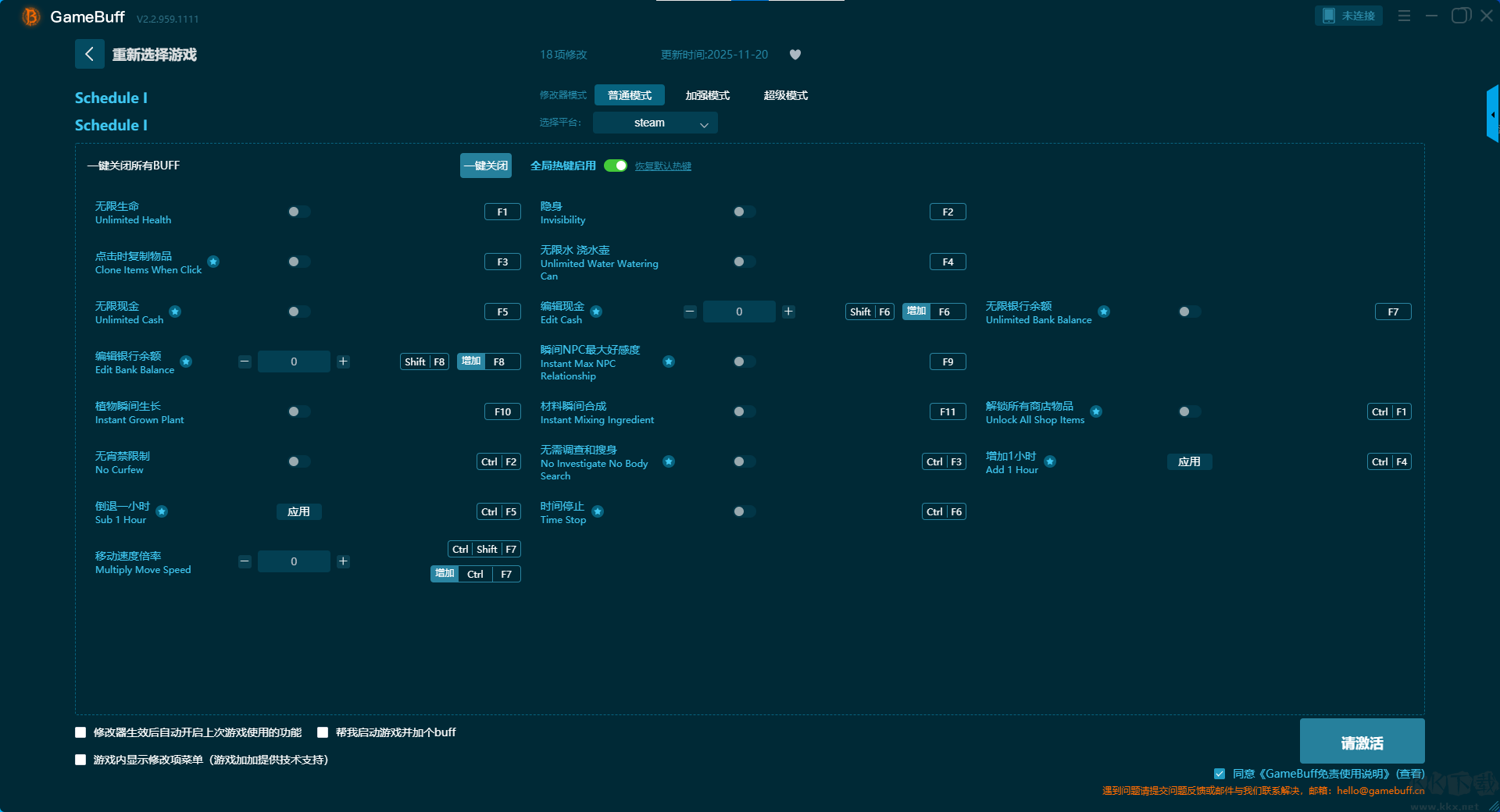 Schedule I十八项修改器pc国际版加强模式修改功能介绍