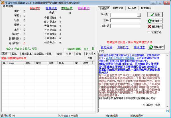 小白宝宝斗场辅助是一款简单而又实用的宝宝斗场辅助工具,软件能够完全解放双手,小白宝宝斗场辅助让用户在玩宝宝斗场辅助迅速刷金币、自动训练宠物、自动收取奖励等,宝宝斗场辅助是一款非常实用的工具,解放你的双手,让你更加愉快的玩游戏,不再为游戏中遇到的挫折而烦恼!