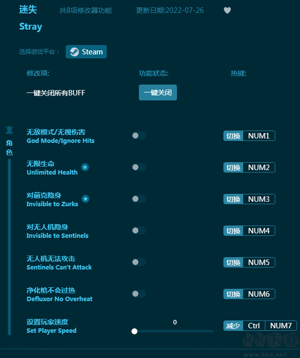 《迷失》是今年备受好评的流浪猫咪第一人称冒险故事,玩家将扮演一只猫在未来都市里寻找回家的路。KK小编为大家带来这款游戏的最新辅助工具,提供八项游戏辅助功能,无敌,无限生命,隐身等等,让你成功回家!感兴趣的朋友不要错过,KK下载站推荐大家下载体验!