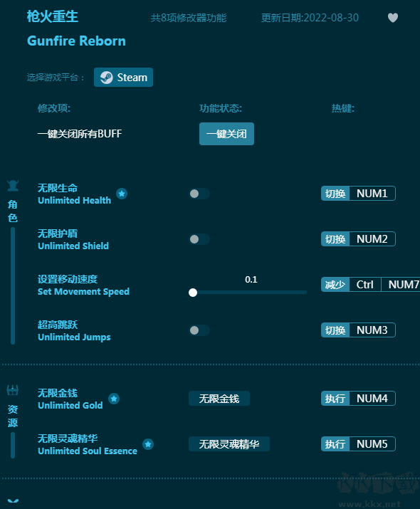 枪火重生修改器专为《枪火重生》游戏开发,为玩家提供八项免费游戏辅助功能,无限生命,无限护盾,无限金钱,无限灵魂精华等等。为玩家带来更愉快的游戏体验!有需要的朋友不要错过,KK下载站推荐大家下载体验!
