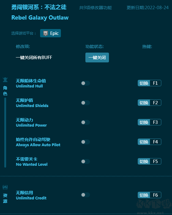 《勇闯银河系不法之徒》是一款科幻射击冒险手游,玩家驾驶飞船在太空中冒险。搭配本款勇闯银河系不法之徒修改器,开启九项辅助,无限生命值,无限护盾,无限动力,自动驾驶等等,让玩家在宇宙中驰骋,所向披靡!有需要的朋友不要错过,KK下载站推荐大家下载体验!