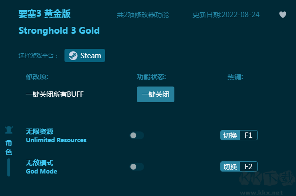 要塞3黄金版无敌修改器是一款针对《要塞3黄金版》出品的无限资源无敌游戏辅助工具。内置两项辅助功能,提供无限资源,无敌模式的游戏帮助。有了这两项帮助,玩家能够快速发展城市,并入侵其他城市,成为最强要塞帝国!感兴趣的朋友不要错过,KK下载站推荐大家下载体验!