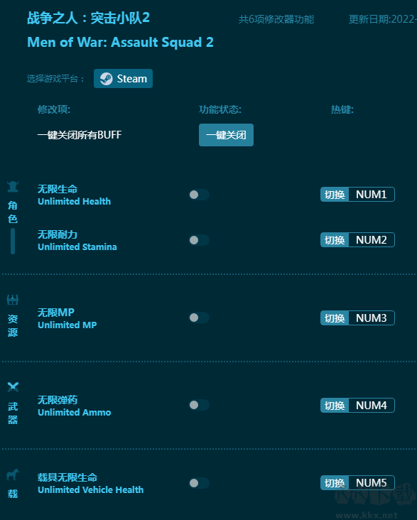 《战争之人突击小队2》是一款二战题材的即时战略游戏。小编为各位玩家带来它的专用六项修改辅助工具,内置功能可直接使用,为玩家提供无限生命,无限耐力,无限MP,无限弹药等功能,让玩家成为战场之王!感兴趣的朋友不要错过,KK下载站推荐大家下载体验!