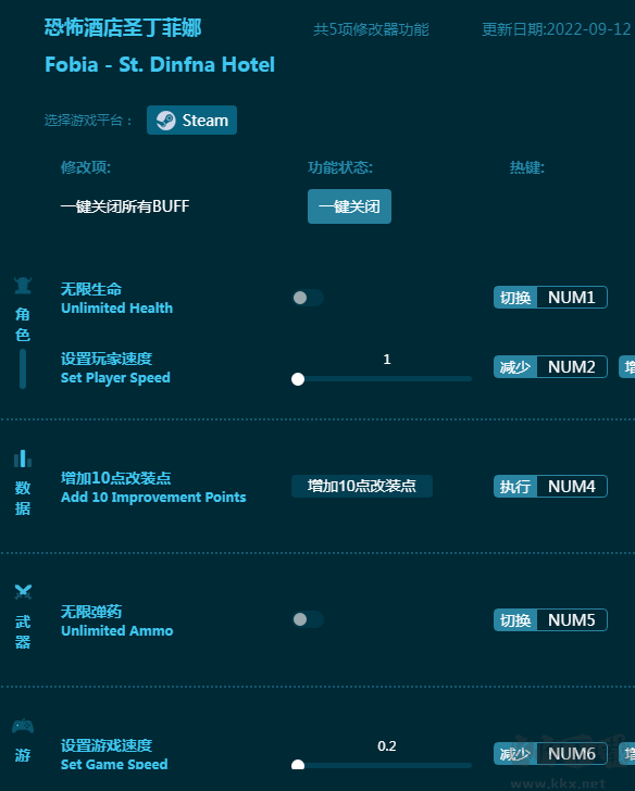 《恐怖酒店圣丁菲娜》是一款类似《逃生》的生存恐怖解密游戏。KK小编为各位玩家带来这款《恐怖酒店圣丁菲娜修改器》,内置多项游戏辅助功能,为玩家提供生命,速度,弹药等强力游戏辅助,让玩家能够安心破解谜题,找出真相!感兴趣的朋友不要错过,KK下载站推荐大家下载体验!