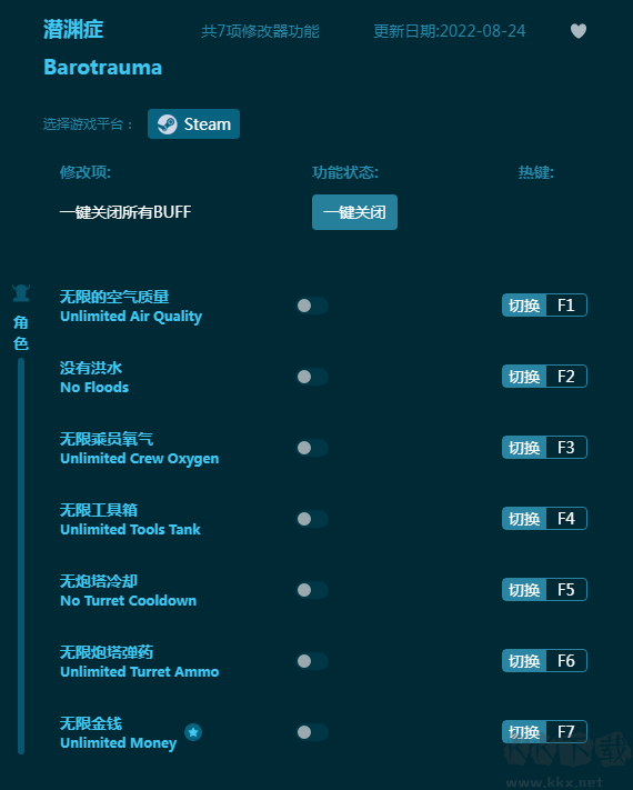 《潜渊症》是一款发生在木卫二海面下的生存冒险游戏,玩家要率领团队前往海底,探寻木卫二的秘密。KK小编为大家带来这款《潜渊症修改器》专为《潜渊症》开发,内置多项游戏辅助,支持空气质量,氧气,弹药,金钱等等进行修改,让玩家游戏玩的更爽!感兴趣的朋友不要错过,KK下载站推荐大家下载体验!