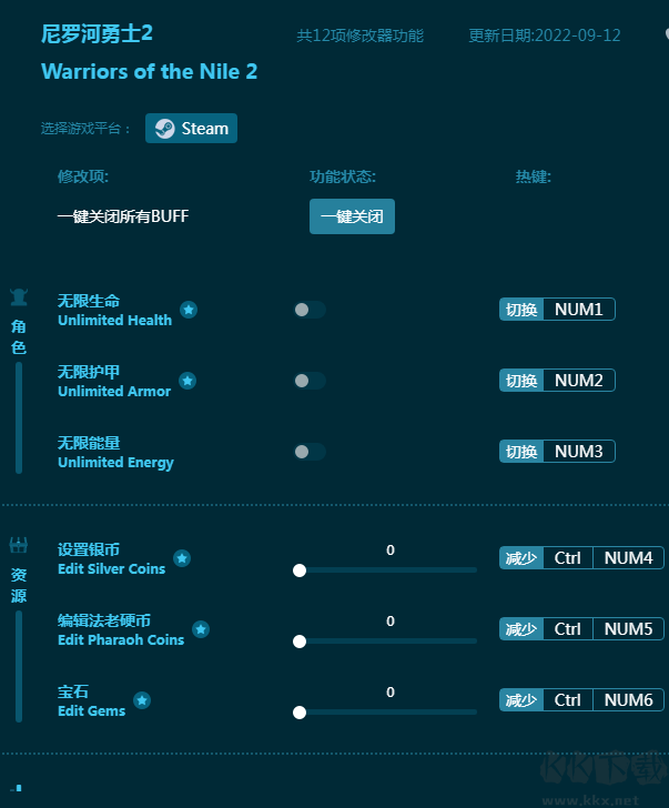 《尼罗河勇士2》是一款全新出品的快节奏肉鸽战棋游戏。KK小编就为大家带来这款《尼罗河勇士2修改器》,内置多项游戏辅助功能,支持生命,护甲,能量,银币,宝石等多方面修改,帮助玩家战无不胜!感兴趣的朋友不要错过,KK下载站推荐大家下载体验!