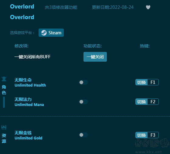 《OverLord霸王》是一款自由度极高的冒险游戏,玩家扮演霸王,可以指挥小弟做任何你想做的事。加上这款《OverLord霸王修改器》带来的无限生命,法力,金钱等游戏辅助,让玩家成为游戏世界全能的霸王!感兴趣的朋友不要错过,KK下载站推荐大家下载体验!