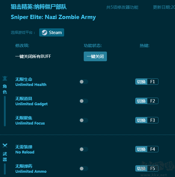 《狙击精英纳粹僵尸部队》是一款二战题材的僵尸射击游戏。游戏中玩家要独自面对僵尸大军。只需要使用本款《狙击精英纳粹僵尸部队修改器》,为玩家修改无限生命,道具,聚焦等等功能,玩家就能一人战胜庞大的僵尸大军,游戏更爽快!感兴趣的朋友不要错过,KK下载站推荐大家下载体验!