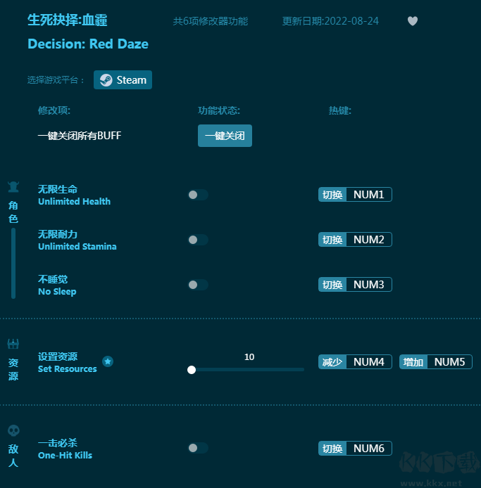 生死抉择血霾修改器是一款针对《生死抉择血霾》游戏打造的强力游戏辅助工具。生死抉择血霾修改器能够为玩家提供无限生命,无限耐力,不睡觉,设置资源,一击必杀等众多强力帮助。玩家能够更轻松的重建文明,游戏体验更爽快!感兴趣的朋友不要错过,KK下载站推荐大家下载体验!