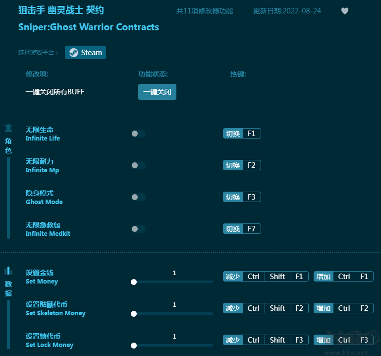 《狙击手幽灵战士契约》是一款第一人称射击游戏,玩家在游戏内要完成暗杀任务。小编给大家准备的狙击手幽灵战士契约修改器就是为这款游戏制作的,它包含了无限生命、无限弹药、无限耐力等功能,它可以帮助玩家轻松获得任务的胜利。感兴趣的朋友不要错过,KK下载站推荐大家下载体验!