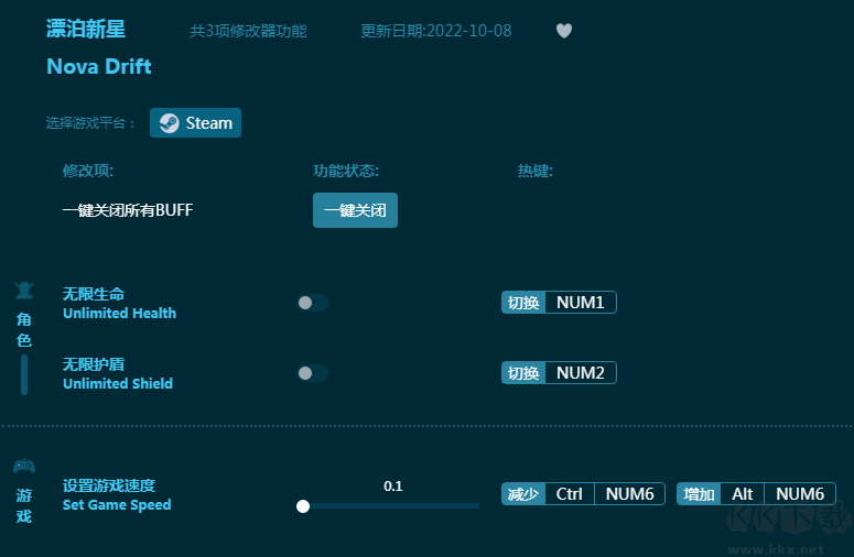 《漂泊新星修改器》是一款专为《漂泊新星》游戏打造的游戏辅助软件。内置多项游戏辅助功能,包括无限生命,无限护盾等,有了这款修改器帮助,让玩家获得更爽快的游戏体验!感兴趣的朋友不要错过,KK下载站推荐大家下载体验!