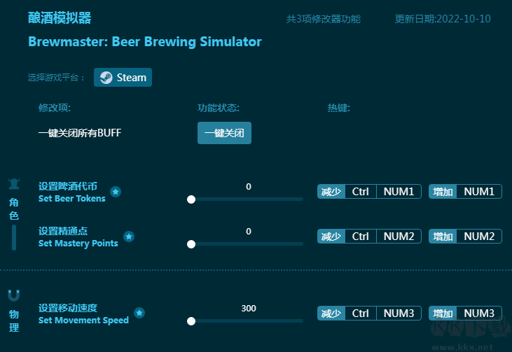 《酿酒模拟器修改器》专为《酿酒模拟器》游戏出品,内置多功能游戏辅助功能,包括啤酒代币,设置精通点,设置移动速度等,帮助玩家更快速酿制自己想酿的酒类!感兴趣的朋友不要错过,KK下载站推荐大家下载体验!