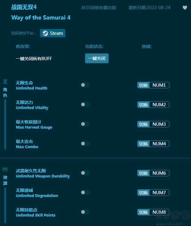 《战国无双4》是一款以日本战国背景为主的真实战略游戏。KK下载站提供《战国无双4修改器》为玩家提供帮助。战国无双4修改器支持玩家获得无限生命,无限活力,无限耐久,最大连击等等,帮助玩家无所畏惧,游戏体验更佳!感兴趣的朋友不要错过,KK下载站推荐大家下载体验!