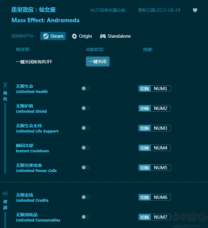 《质量效应:仙女座》是一款未来科幻游戏作品,玩家将作为地球远征军前往仙女座星系为人类征战。KK下载站带来《质量效应:仙女座修改器》提供二十五项游戏辅助功能,包括无限生命,无限护盾,无限金钱,无限消耗品等等强力帮助,让玩家无所不能,游戏体验更佳!感兴趣的朋友不要错过,KK下载站推荐大家下载体验!