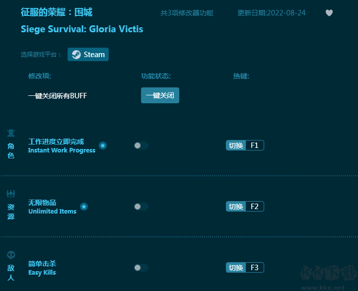 《征服的荣耀:围城》是一款中世纪风格的经营建造游戏,游戏中玩家要带领少数幸存者建立营地对抗侵略者!KK下载站提供《征服的荣耀:围城修改器》让玩家获得更多资源,更多人口,建造速度等等,让文明重建更快速,游戏体验更舒适!感兴趣的朋友不要错过,KK下载站推荐大家下载体验!