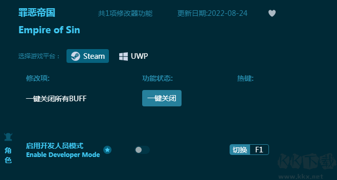 《罪恶帝国》是一款以上世纪美国为蓝本的策略黑帮游戏,玩家要黑帮的中心旋涡,为爬上黑帮老大的位置,为此不择手段。KK下载站为玩家们带来《罪恶帝国修改器》,支持玩家开启开发人员模式,随心修改游戏各项数据,让黑帮之路更轻松爽快,游戏体验更佳!感兴趣的朋友不要错过,KK下载站推荐大家下载体验!
