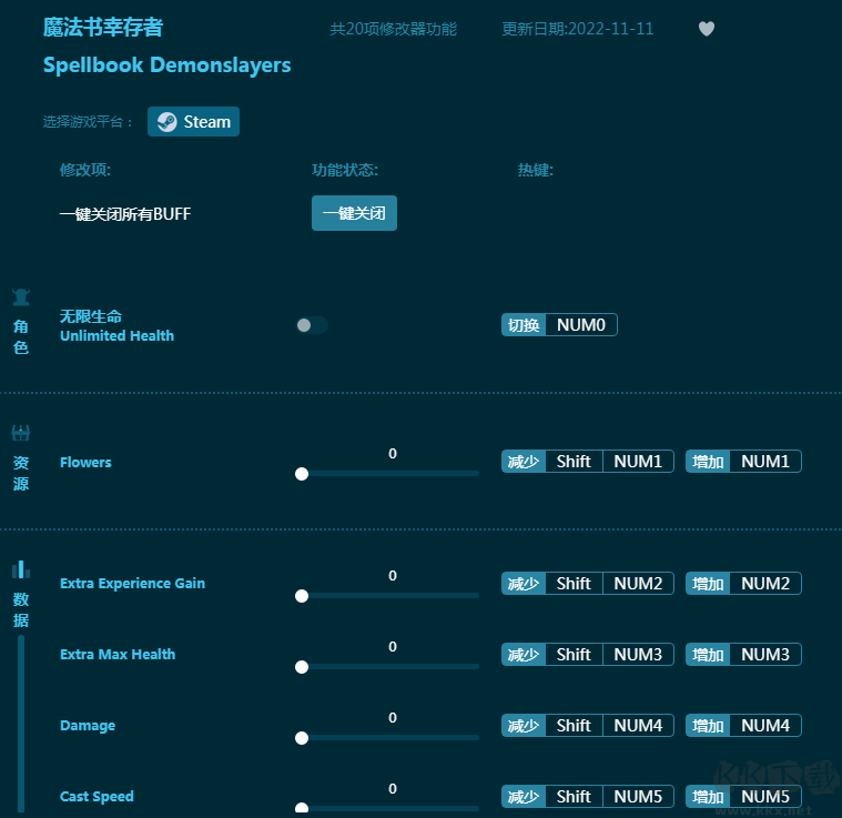 《魔法书幸存者》是一款复古式肉鸽动作游戏,不断学习强大魔法,对抗摧毁恶魔基地!这款《魔法书幸存者修改器》能够帮助玩家轻松完成任务。内置全面二十项辅助,能提供无限生命,无限速度,无限护甲等,带来玩家全新的割草体验!感兴趣的朋友不要错过,KK下载站推荐大家下载体验!