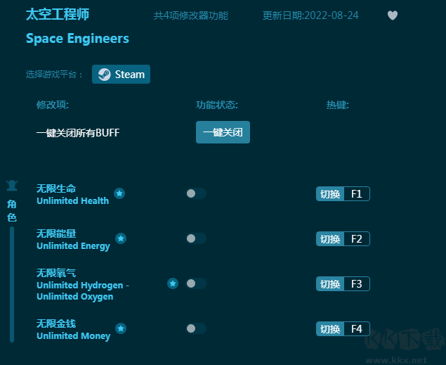 《太空工程师》是一款太空沙河建造游戏,玩家可以在太空畅游,并收集各类资源进行建造。而这款《太空工程师修改器》能够为玩家带来无限生命,无限能量,无限氧气,无限金钱等多功能游戏辅助,让玩家的游戏体验更佳!感兴趣的朋友不要错过,KK下载站推荐大家下载体验!