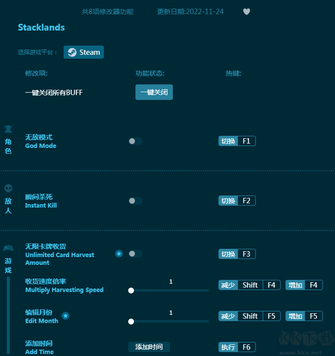 5、等待显示“BUFF加持成功”后,我们就可以在堆叠大陆游戏中使用按键来快速激活和关闭对应的修改器功能了