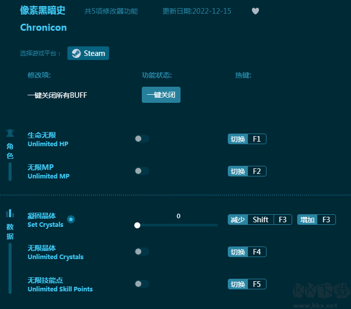 像素黑暗史修改器专为《像素黑暗史》游戏玩家们出品,带来更爽快的游戏体验。像素黑暗史修改器提供多项游戏辅助,包括无限生命,无限MP,无限晶体,无限技能点等等,有了这些帮助,玩家游戏体验绝对爽快!感兴趣的朋友不要错过,KK下载站推荐大家下载体验!