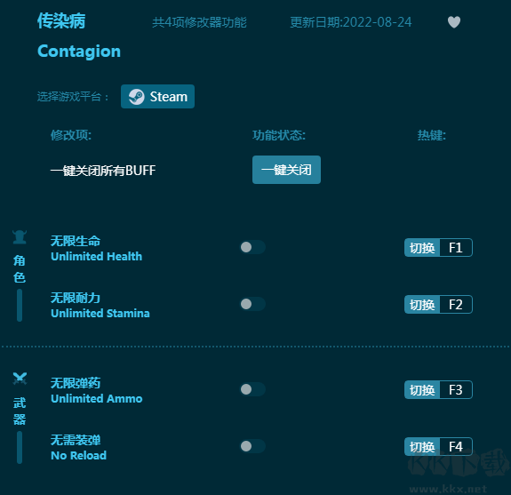 传染病修改器是一款针对游戏《传染病》玩家出品的游戏修改器。有了这款《传染病修改器》帮助玩家获得无限生命,无限耐力,无限弹药等帮助,让玩家的冒险更刺激有趣,游戏体验更佳!感兴趣的朋友不要错过,KK下载站推荐大家下载体验!