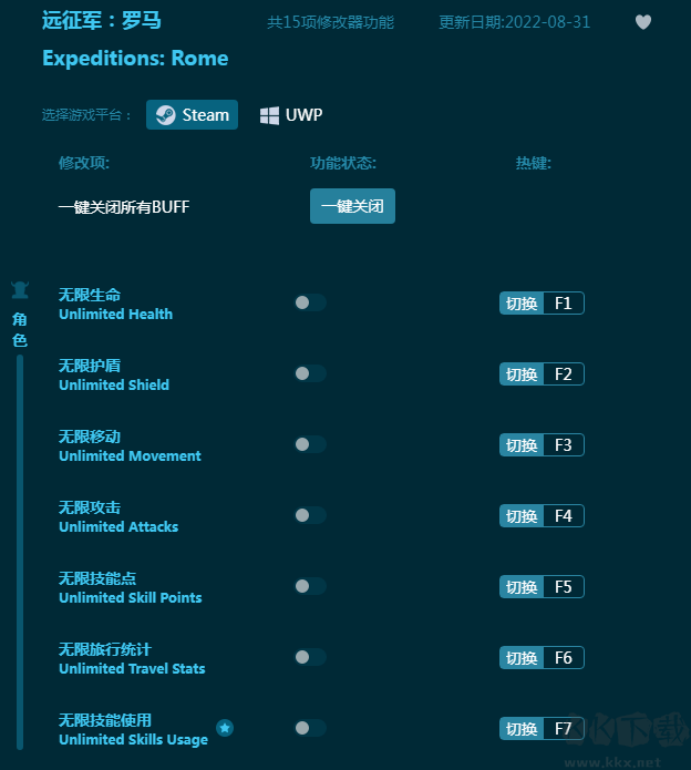 远征军:罗马修改器是针对游戏《远征军:罗马》出品,远征军:罗马修改器内置十五项强力游戏辅助,包括无限生命,无限护盾,无限移动,无限攻击,无限技能点等等,玩家可以自由使用,让玩家游戏体验更轻松爽快!感兴趣的朋友不要错过,KK下载站推荐大家下载体验!